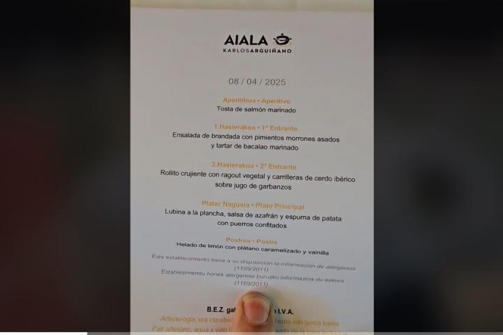 Ha sido el usuario de TikTok @rekadista quien ha provocado una multitud de reacciones al mostrar cuánto ha pagado por un elaborado menú de cuatro platos y un postre en la Escuela de Hostelería AIALA que Arguiñano tiene en Zarautz.