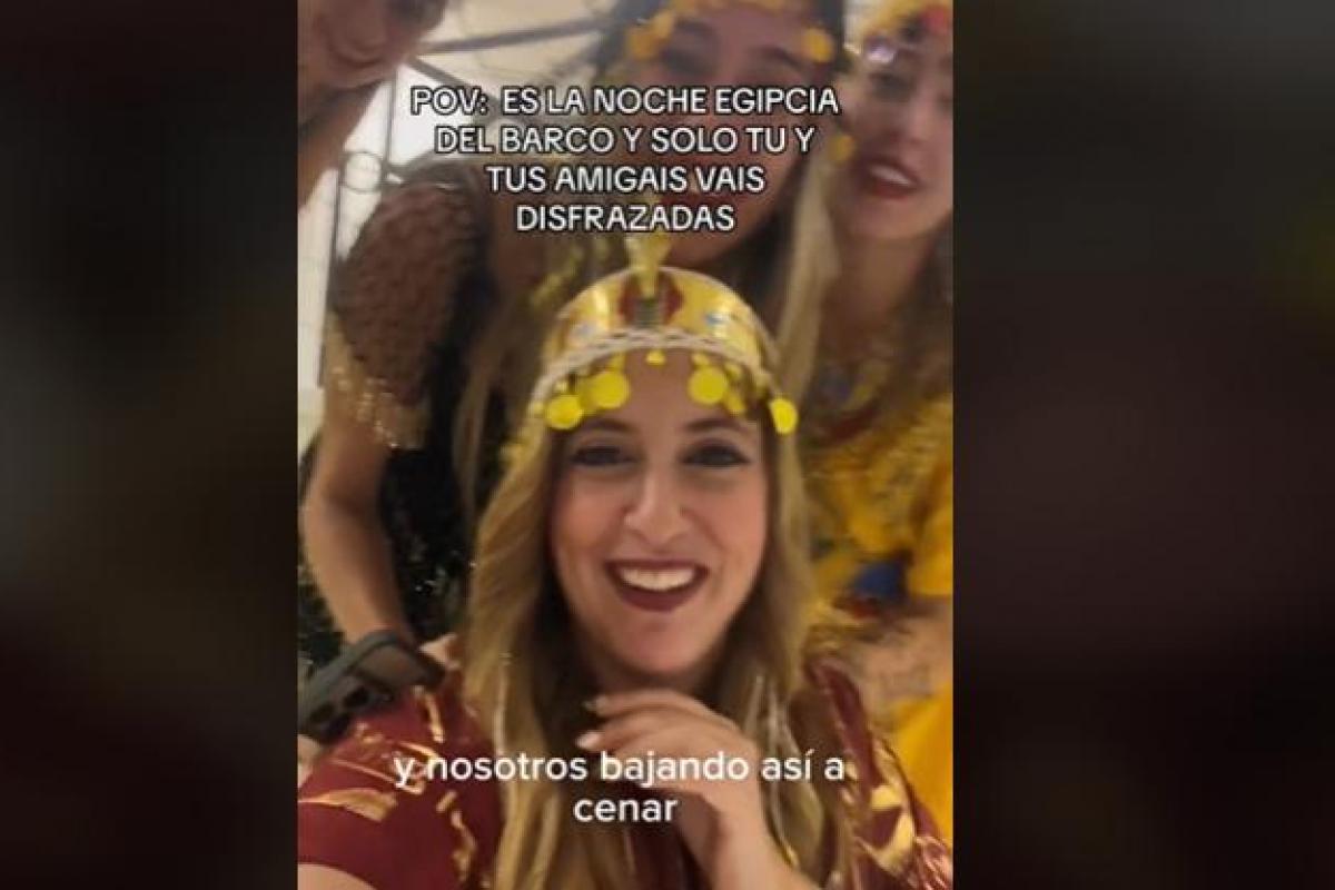 Lo que ellas entendieron es que tenían que ir disfrazadas, por lo que le dijeron, pero el resto de la gente no hizo ni caso. Llegaron al restaurante del barco vestidas con los típicos disfraces egipcios mientras que los demás comensales vestían con ropa de calle.