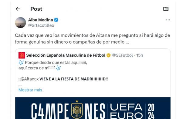 Y una usuaria reaccionó señalando: "Cada vez que veo los movimientos de Aitana me pregunto si hará algo de forma genuina sin dinero o campañas de por medio ...".