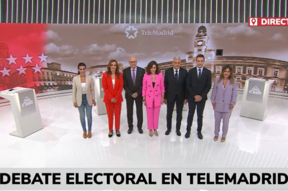 Los cinco principales candidatos a presidir la Comunidad de Madrid se enfrentan este martes en Telemadrid al primer y único debate en el que también estará la presidenta de la Comunidad de Madrid, Isabel Díaz Ayuso.