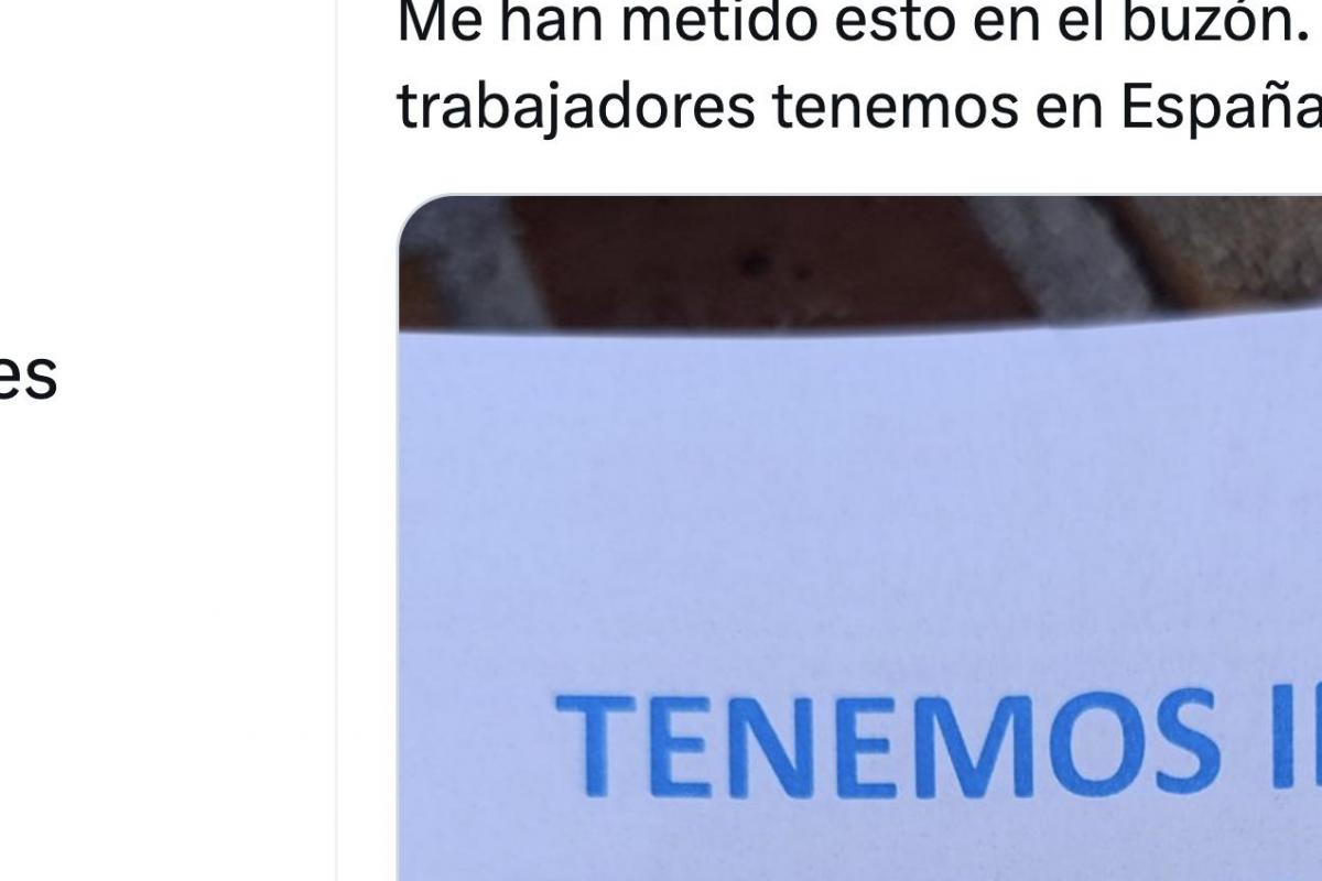 En X, una usuaria ha compartido el folleto que le han dejado en su buzón y avisa de que es algo que va a empezar a verse por los barrios de España. "Me han metido esto en el buzón. Quien no vea el problemón que los trabajadores tenemos en España con la vivienda está ciego", ha escrito en la red social de Elon Musk.