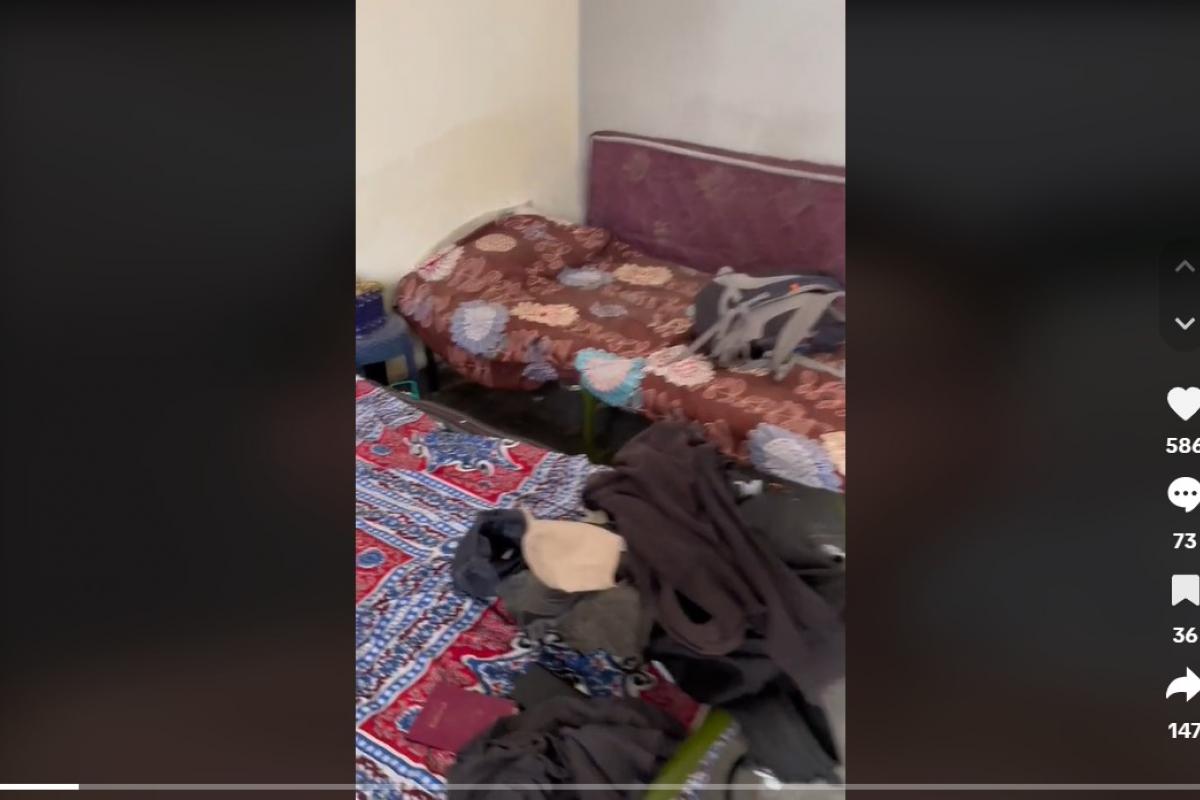 "Son tres camas, no sé usadas por cuántas personas", dice antes de dar golpes en una de ellas para enseñar lo dura que está. "Suena a madera", subraya. Y al final del vídeo se ve cómo encuentran un ratón por allí.