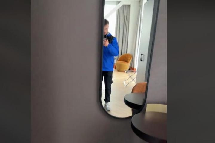 "Aquí, haciendo un recorrido por la habitación del hotel, ya sabes, tiene sus cosas estándar, armarios, lindos asientos, no está tan mal... Una pequeña y agradable área para sentarse con televisión y", ha expresado al principio del vídeo, que ha acumulado más de 17 millones de visitas y 2,2 millones de 'me gusta'.