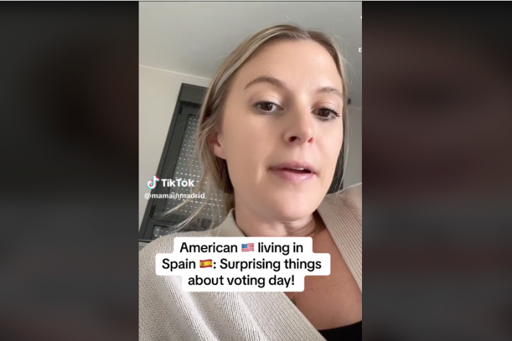 La usuaria de TikTok @mamainmadrid, una ciudadana estadounidense que vive en Madrid, ha subido un vídeo a esa red social en el que se muestra totalmente sorprendida por cómo funciona y cómo se vive la jornada electoral en España.