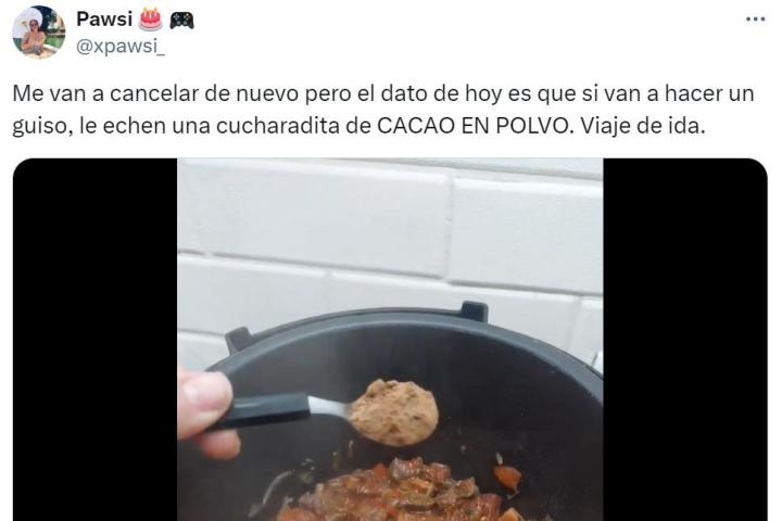 La tuitera Pawsi (@xpawsi_) ha subido un vídeo a la red social X, anteriormente conocida como Twitter, en el que muestra una inusual ocurrencia: echarle una cucharada de cacao en polvo a un guiso de carne.