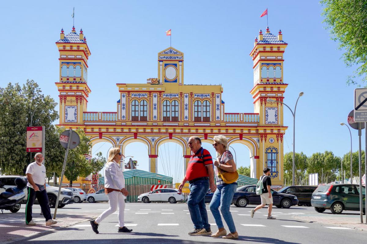 La usuaria de TikTok @inma.moral.mz ha publicado un vídeo, de los muchos que han estado circulando de la feria de abril de Sevilla, en el que aparece una joven paseando por un pasillo al aire libre repleto de casetas.