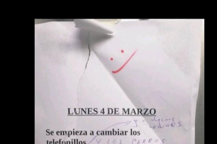 Anuncian que se van a cambiar los telefonillos y las anotaciones a mano en el cartel son canela fina