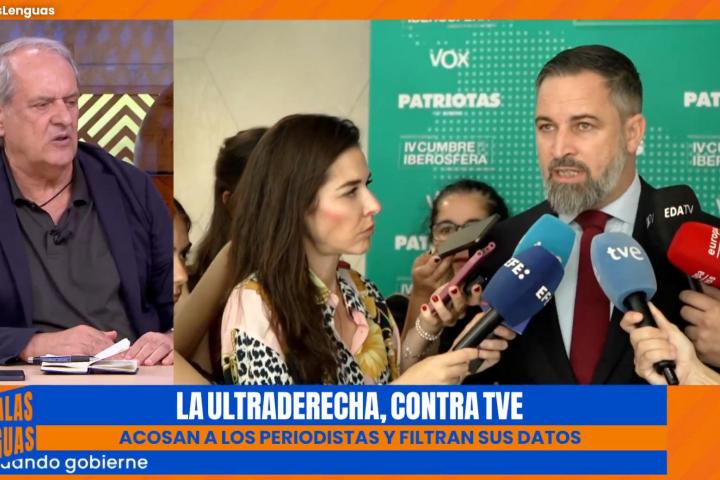 En un vídeo se mostraban algunas de las agresiones que habían sufrido los periodistas al ir a informar de las manifestaciones que se han hecho por parte de personas de ultraderecha en Ferraz, Moncloa o Colón en las últimas semanas. También se difundieron datos privados de algunos rostros de RTVE y se recuperó la amenaza de Santiago Abascal de terminar con programas como Malas lenguas.