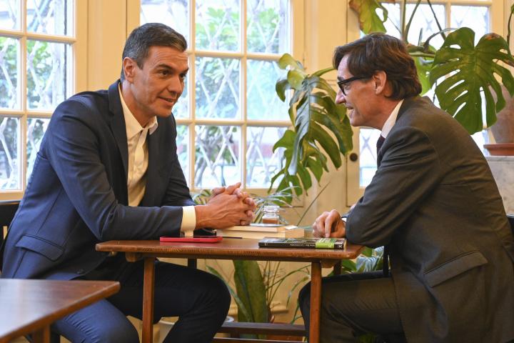 El presidente del Gobierno asistió sobre las 17.00 horas a una reunión, que duró unos 45 minutos, con Salvador Illa en la librería La Central de la Ciudad Condal y le regaló al exministro de Sanidad el libro La columna, de Adrien Bosc.