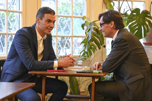 El presidente del Gobierno asistió sobre las 17.00 horas a una reunión, que duró unos 45 minutos, con Salvador Illa en la librería La Central de la Ciudad Condal y le regaló al exministro de Sanidad el libro La columna, de Adrien Bosc.