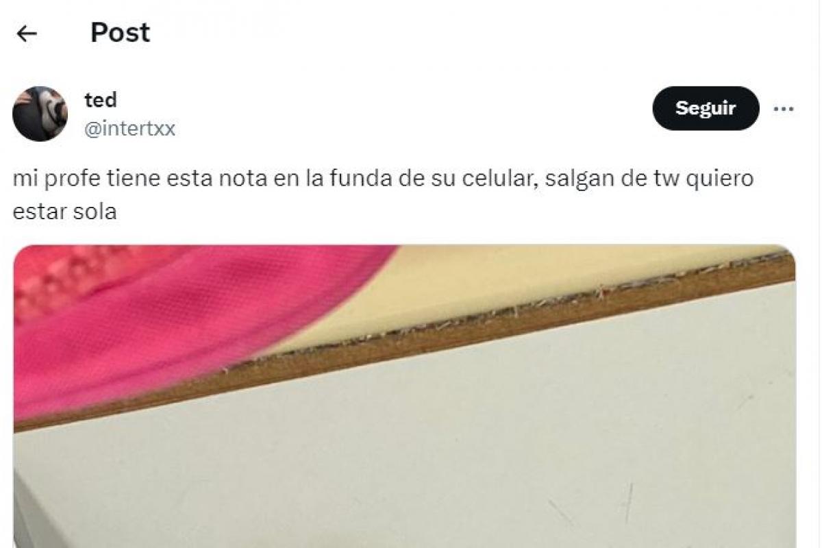 Arrasa en Twitter al mostrar la nota que tiene su profesor pegada a la funda del móvil