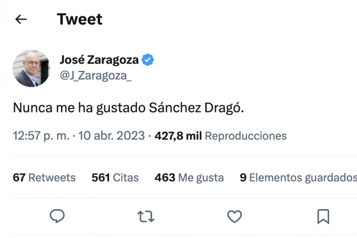 Durante la mañana del martes, multitud de personas relacionadas con el mundo de la cultura y de la política han compartido en Twitter reflexiones sobre la figura del escritor. Una de las más polémicas ha sido la del diputado del PSOE José Zaragoza, que ha escrito: "Nunca me ha gustado Sánchez Dragó".