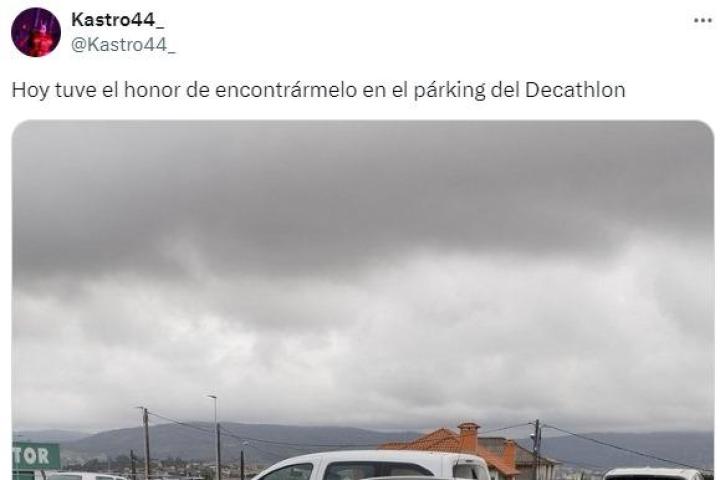 "Hoy tuve el honor de encontrármelo en el parking del Decathlon", ha escrito el tuitero @Kastro44_ justo antes de adjuntar en su tuit una fotografía del citado coche que, además, no es la primera vez que ve.