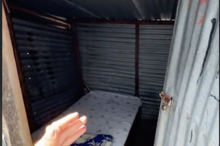 En el vídeo muestra que el hotel en cuestión es una especie de habitáculo con una cama y un barreño para ducharse al lado del mar. Las paredes parecen de uralita y no hay casi ventilación.