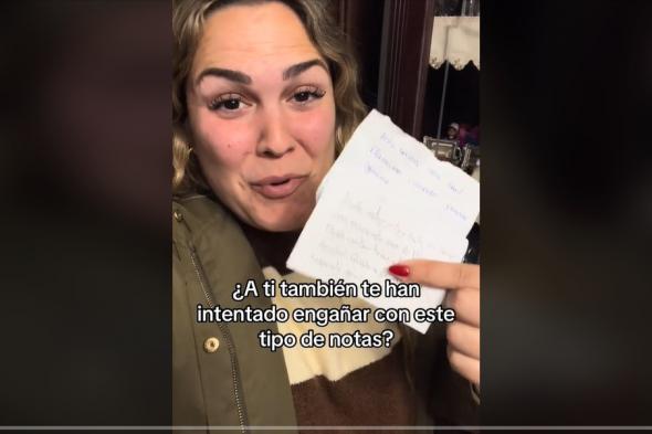 "¿A ti también te han intentado engañar con este tipo de notas? Estas en concreto me las he encontrado en una vivienda que está en venta. Y fíjate, la primera con una buena caligrafía, muy redondita. Esta sí está escrita realmente a boli, esta nota es la original, pero si nos fijamos en la de abajo se ve claramente que es una fotocopia de una nota manuscrita de la que se han hecho varias copias y se van distribuyendo por diferentes viviendas", se dicen en la cuenta de TikTok.