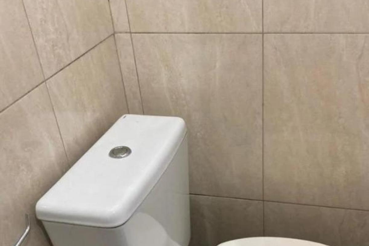 "Estaba ayudando a una amiga a buscar alquiler y me encontré con esto", ha escrito en la red social. A continuación ha mostrado una fotografía de inodoro completamente encajonado entre las paredes del baño.
