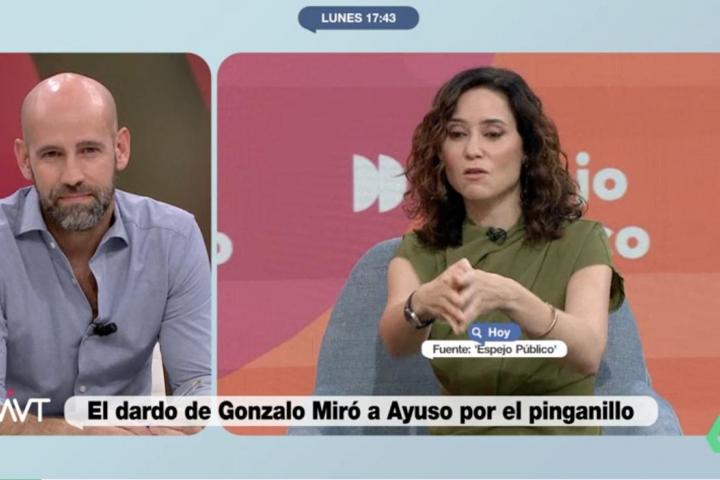 Cruce de acusaciones entre Isabel Díaz Ayuso y Gonzalo Miró desde los platós de Atresmedia. Si esta mañana la presidenta de la Comunidad de Madrid aseguraba en Espejo Público que el tertuliano tenía "algo personal" contra ella, ahora él ha respondido desde Más Vale Tarde.