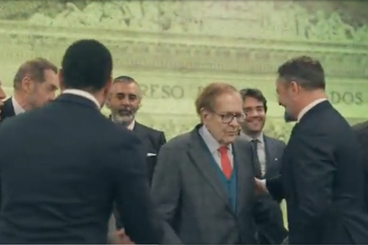 En la instantánea en cuestión aparece Ramón Tamames, que ha aceptado ser el candidato del partido de Abascal, junto al propio líder del partido, al escritor Fernando Sánchez Dragó, y a otros dirigentes de la formación como Ignacio Garriga o Iván Espinosa de los Monteros.