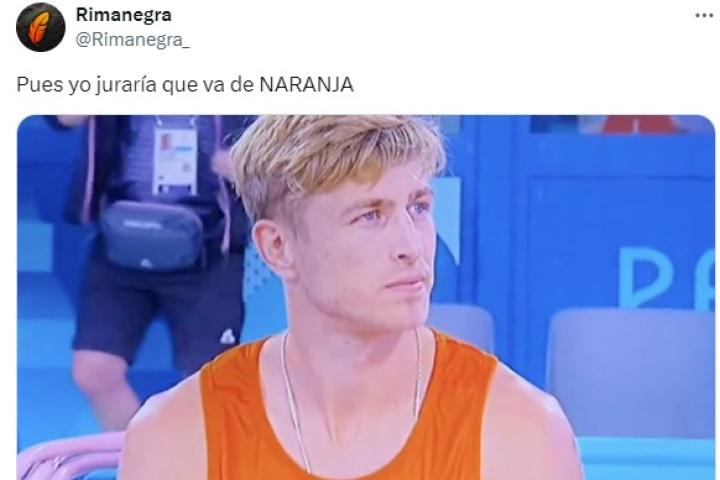 "Pues yo juraría que va de NARANJA", ha tuiteado el tuitero en todo divertido, haciendo referencia al color de la camiseta que lleva el deportista holandés y a la similitud de su apellido con el color verde.