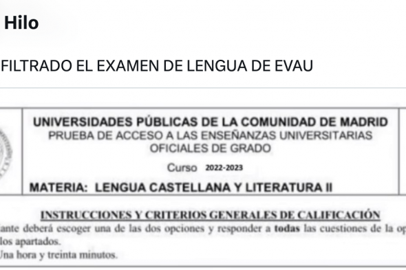 Cachondeo por la 'filtración' de este examen de Lengua de la EBAU