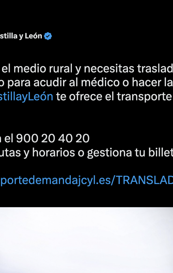 "Si vives en el medio rural y necesitas trasladarte a otro municipio para acudir al médico o hacer la compra, #CastillayLeón te ofrece el transporte a la demanda", anuncian en Twitter.