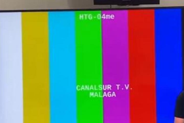Durante el corte de la emisión de Canal Sur, la pantalla se ha quedado sin imagen, emitiendo la franja de rayas de colores conocida como carta de ajuste, la cual se utiliza como reemplazo de la programación regular cuando hay algún problema.