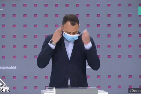 El candidato de Podemos aparece con una mascarilla, se la quita y suelta todo esto de Almeida
