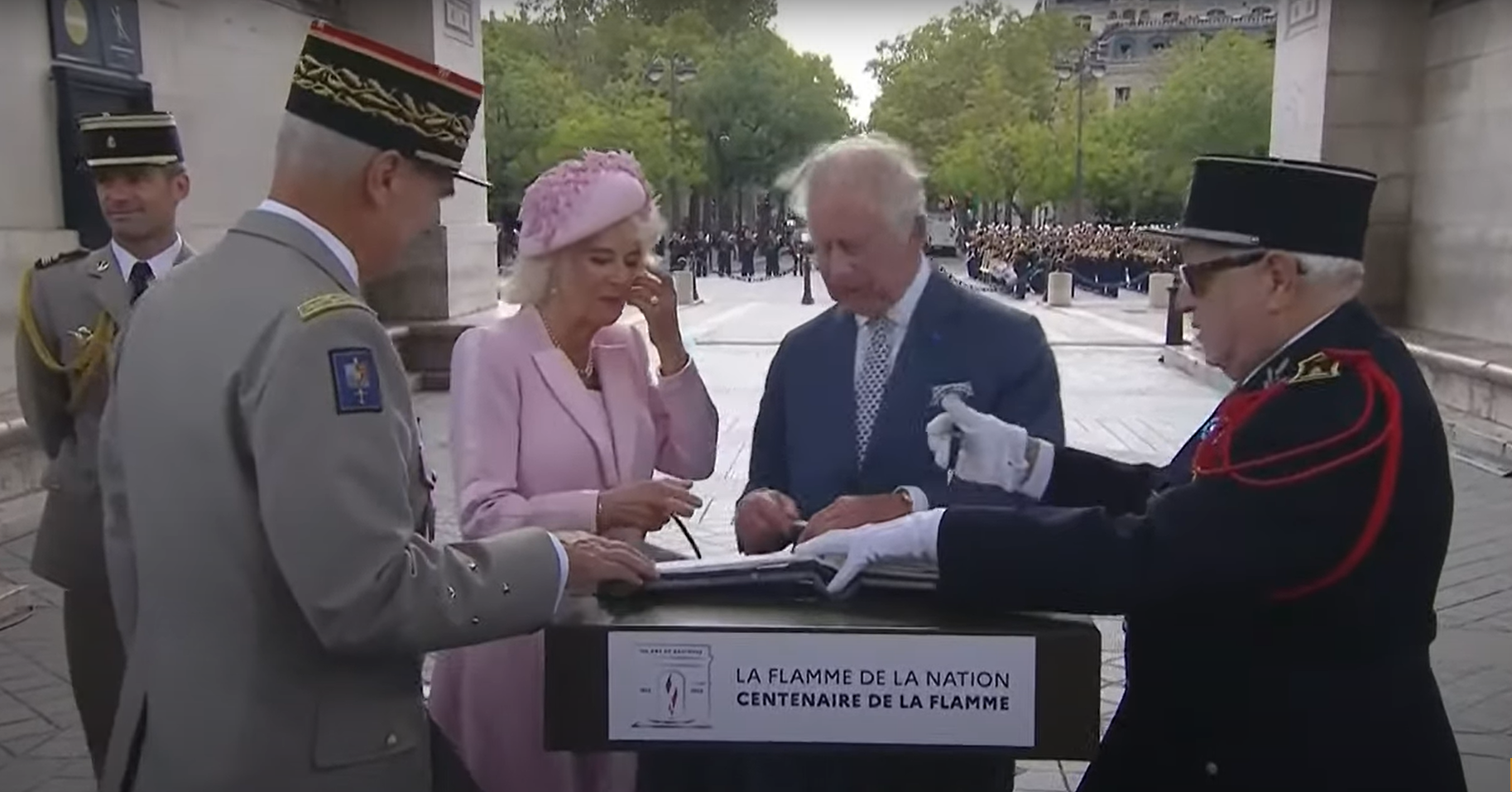 Ahora, cuando tenía que firmar un libro bajo el Arco del Triunfo de París, Carlos III sacó su propio bolígrafo de la chaqueta. Una vez hizo lo que tenía que hacer, se lo volvió a guardar mientras que su esposa, Camila, y el presidente de Francia, Emmanuel Macron, firmaban con un bolígrafo que les prestó un asistente.