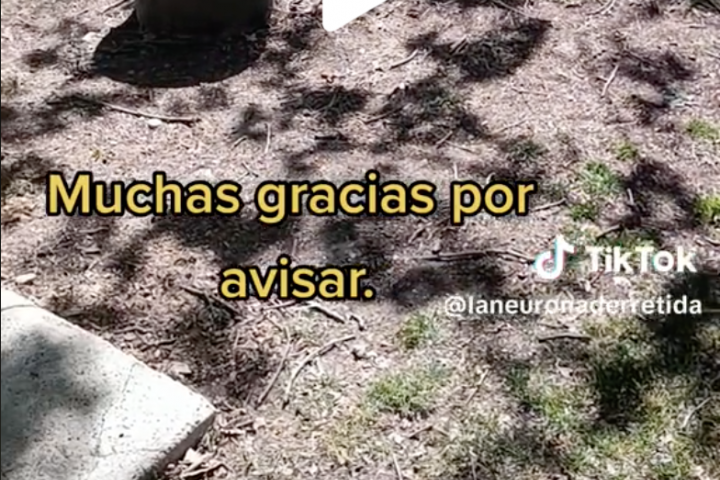"Cosas que uno se encuentra en Madrid. ¿Prohibido nada en el césped? Muchas gracias por avisar, iba a hacerlo ahora mismo. Lo veía muy refrescante y para nada caluroso", se escucha de fondo mientras muestra la zona.