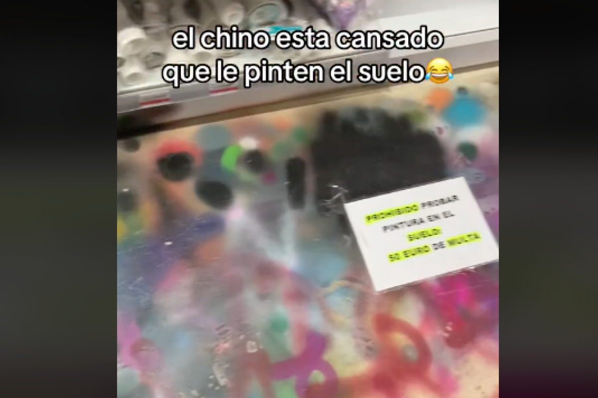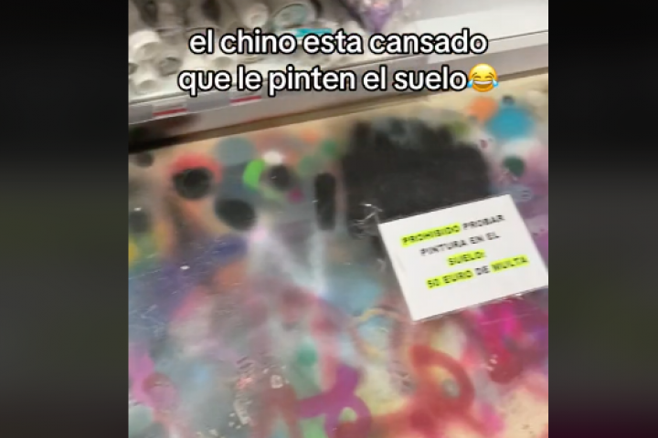 "El chino está cansado que le pinten el suelo", ha comentado en el vídeo que ha publicado y que únicamente dura 10 segundos. En ellos hace un barrido por el pasillo donde tiene el bazar los sprays de pintura y se puede ver el suelo lleno de pintadas en los que los clientes los prueban.