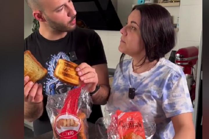 La pareja de tiktokers CookCineme han realizado un vídeo en el que prueban a ciegas tanto un cruapan (un producto que combina un pan de molde con el sabor del croissant) de la marca Bimbo con la copia de la marca Hacendado.