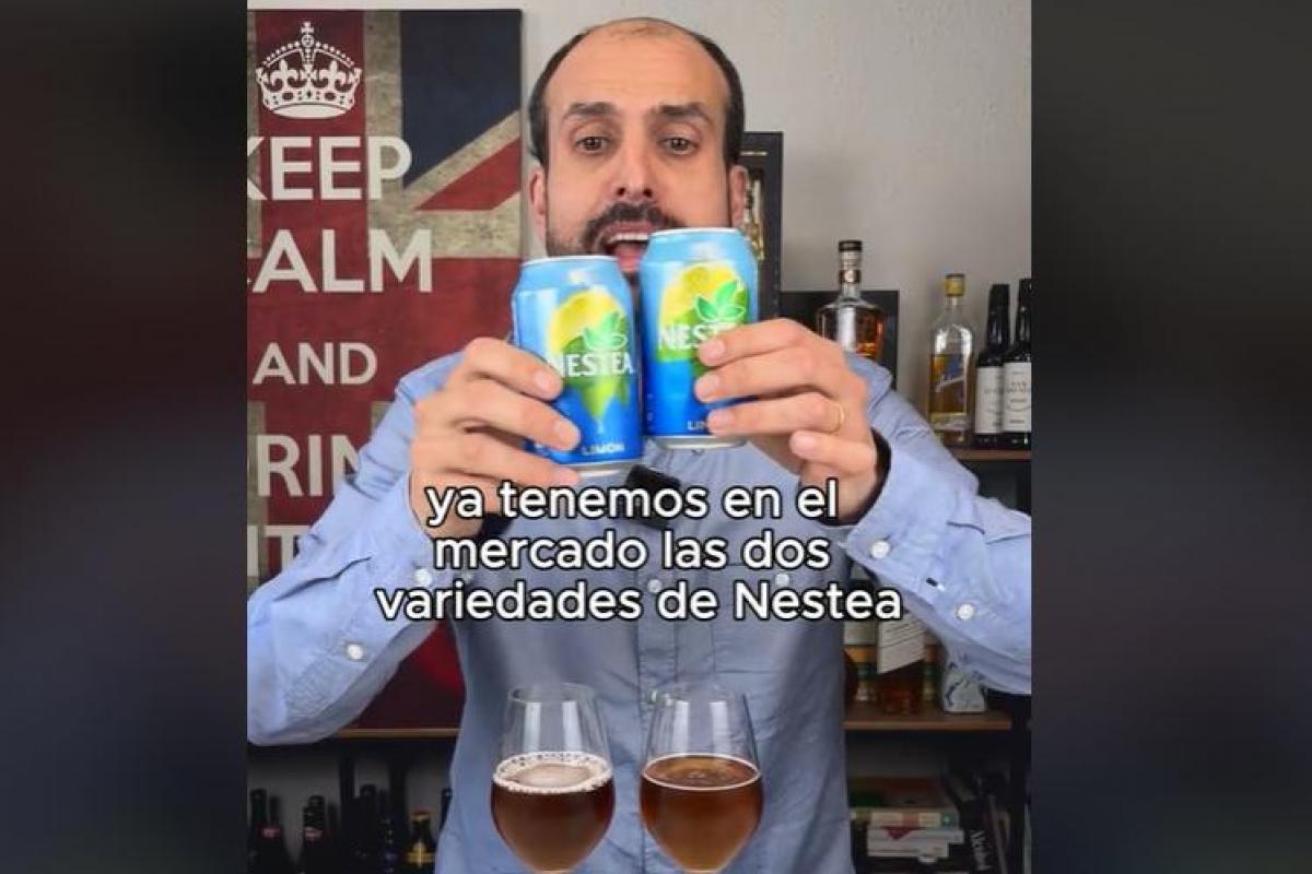 Sergio Estévez, especialista en bebidas y alimentación, fundador de LOCatamos, que cuenta con más de 300.000 seguidores en TikTok (@locatamos), han hecho la cata definitiva de Nestea: por un lado, el que todos conocíamos hasta ahora y, por otro, el que envasa ahora la empresa Damm.