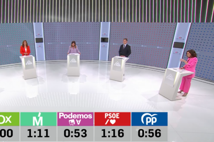 Los cincos principales candidatos a presidir la Comunidad de Madrid se han visto las caras este martes en Telemadrid en el único debate en el que estará presente Isabel Díaz Ayuso.