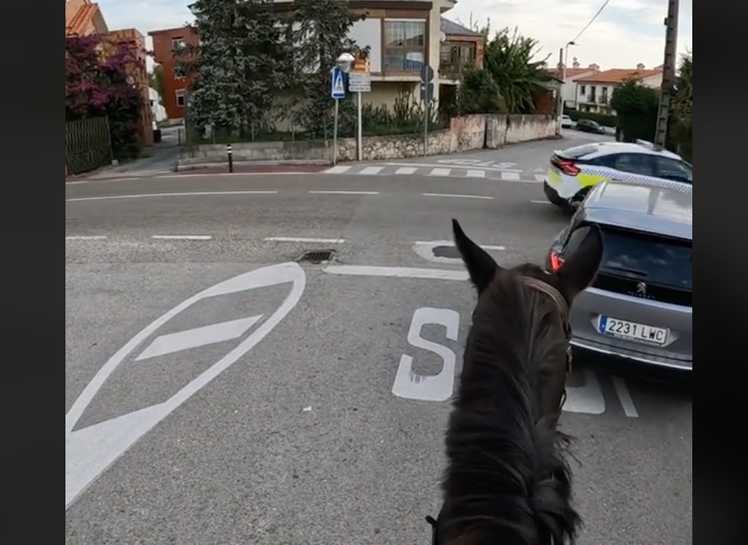 En las imágenes se observa cómo circula por la carretera y va dejando pasar a lo coches que se encuentran detrás 'aparcando' en los lugares de estacionamiento para vehículos. El vídeo, en el que la jinete va narrando el paseo y hablando con el animal, acumula ya casi dos millones de me gusta en al red social.