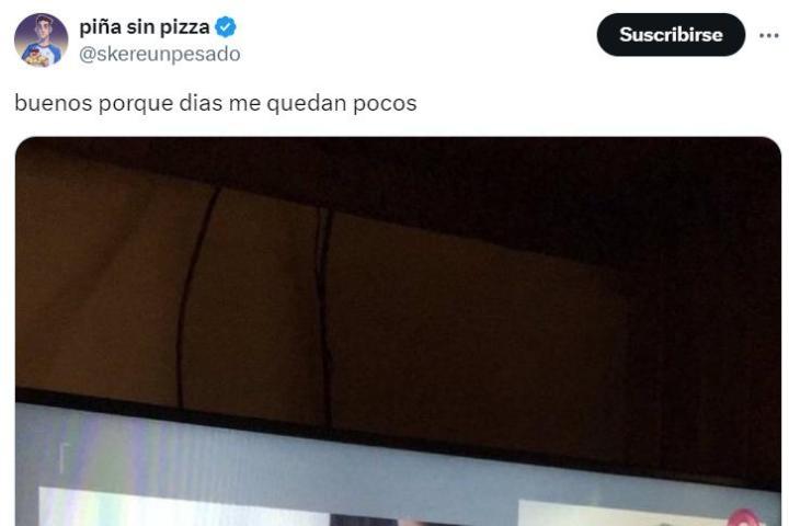 En concreto, el tuitero ha subido una fotografía de una televisión en la que se puede leer un rótulo que reza: "Quejarse muy seguido hace mal a la salud". Y como título de la captura, el creador de contenido ha puesto: "Mis días están contados".