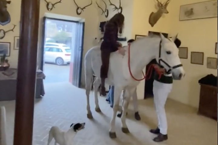 Entonces se viven momentos de tensión. El caballo, nervioso, empieza a moverse por la sala mientras Luis confiesa ponerse nervioso. "Cuidado con el perro, a ver si va a haber una tragedia ahora", comenta en alto antes de despedir el vídeo: "¡Se va a liar el taco aquí hoy!".