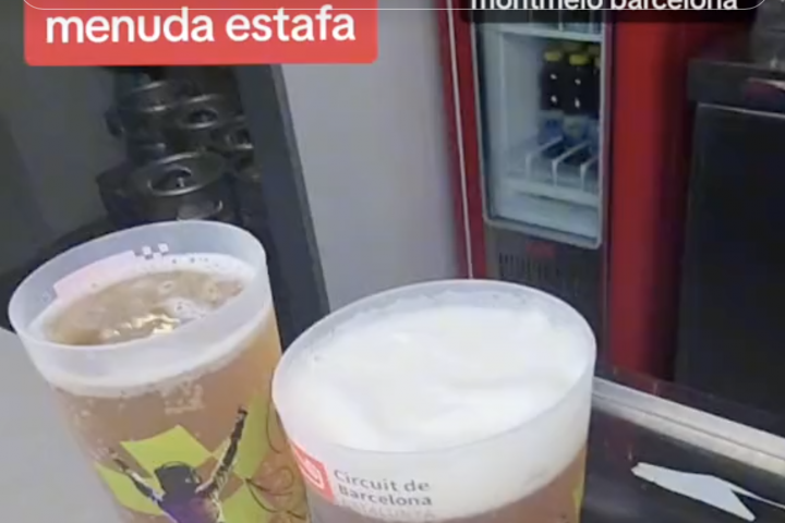 "Menuda estafa", reza el enunciado del vídeo, donde se puede ver que por dos cervezas y una bolsa de patatas en el circuito les han cobrado 23,50 euros.