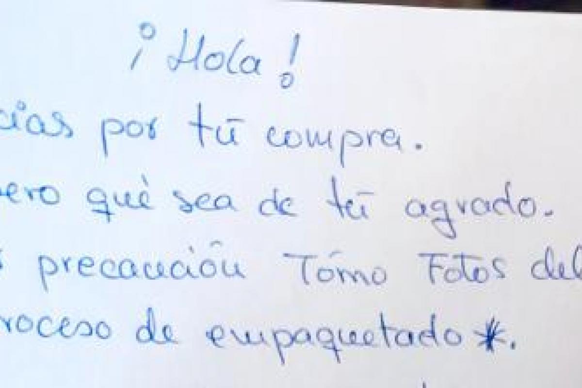 Dice así: "¡Hola! Gracias por tu compra. Espero que sea de tu agrado. Por precaución, tomo fotos del proceso de empaquetado. Como verás, el cómic ya tiene sus años, era de mi hermano mayor, como fan del terror, ciencia ficción, etc...".