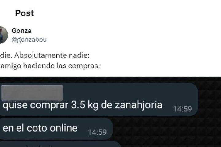 "Quise comprar 3,5 kilos de zanahorias en el Coto online", dice en referencia a un popular supermercado de Argentina. "Me olvidé la coma", remata.