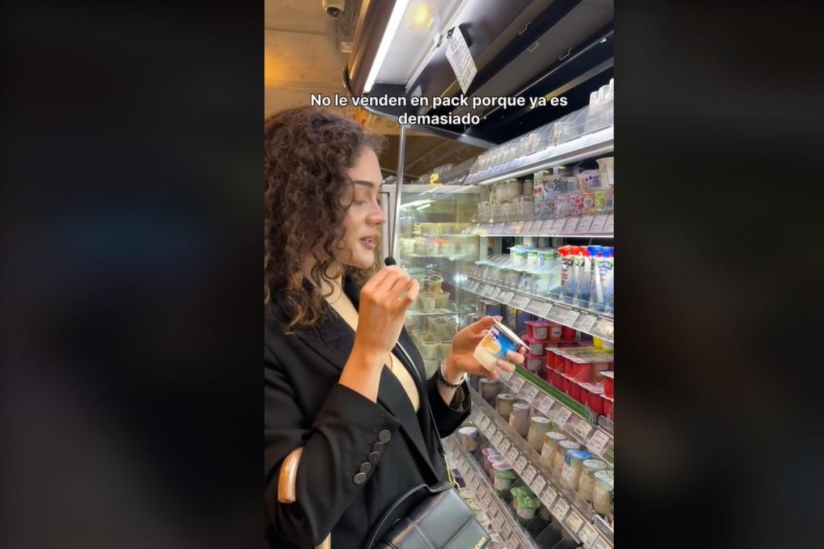 "El yogur mítico Danone lo venden ya individual y son dos euros la ración", subraya antes de mostrar que una ración de salmón son casi 20 euros, una bolsa de patatas Torres de trufa, siete euros y pico. Y subraya: "Creo que en España unos tres". Y para rematar: media docena de huevos son seis euros.