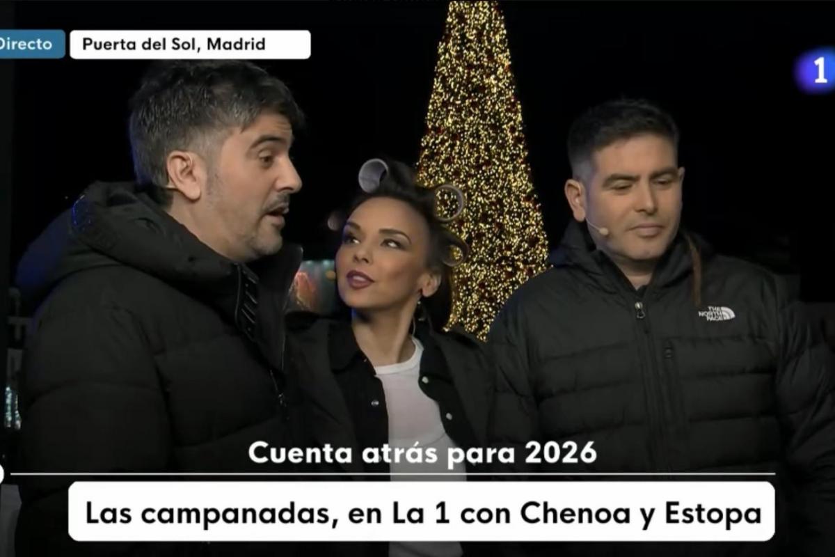 Las cadenas se han volcado con este día tan señalado y, por ejemplo, desde TVE, han conectado con la Puerta del Sol donde estaban Chenoa y Estopa. Ahí muchos se han fijado en un detalle: los rulos de Chenoa.