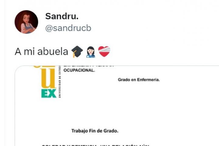 La usuaria de Twitter Sandra Corvo (@sandrucb) ha emocionado a toda la red social del pajarito al compartir dos imágenes del Trabajo Fin de Grado de la carrera de Enfermería. El aplauso que se ha llevado ha sido mayúsculo.
