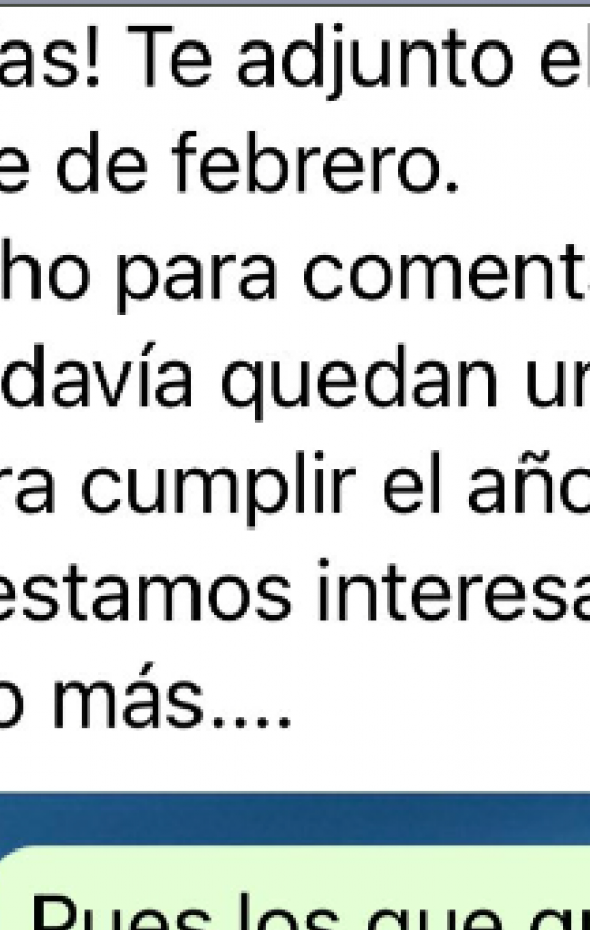 El diálogo lo inicia precisamente el arrendatario, que dice: "Buenos días. Te adjunto el justificante de febrero. Y aprovecho para comentarte que, aunque todavía quedan unos meses para cumplir el año, nosotros estamos interesados en seguir otro más...".