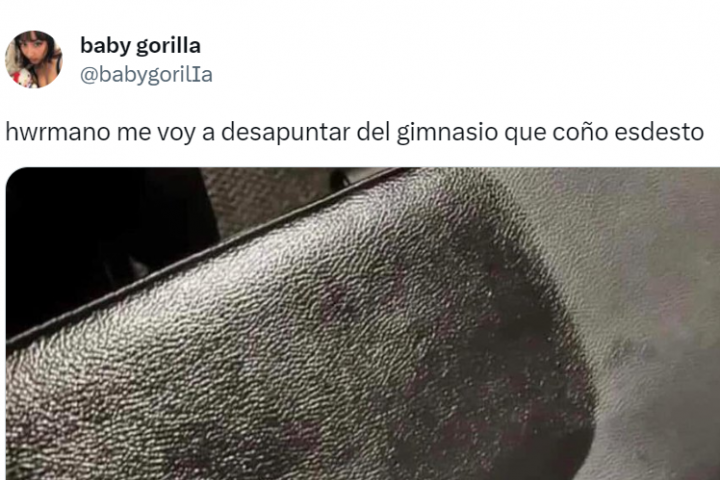 La usuaria de Twitter @babygorilIa se ha convertido en tendencia tras publicar a su cuenta de la red social una foto acompañada de una breve frase: "hwrmano me voy a desapuntar del gimnasio que coño esdesto".
