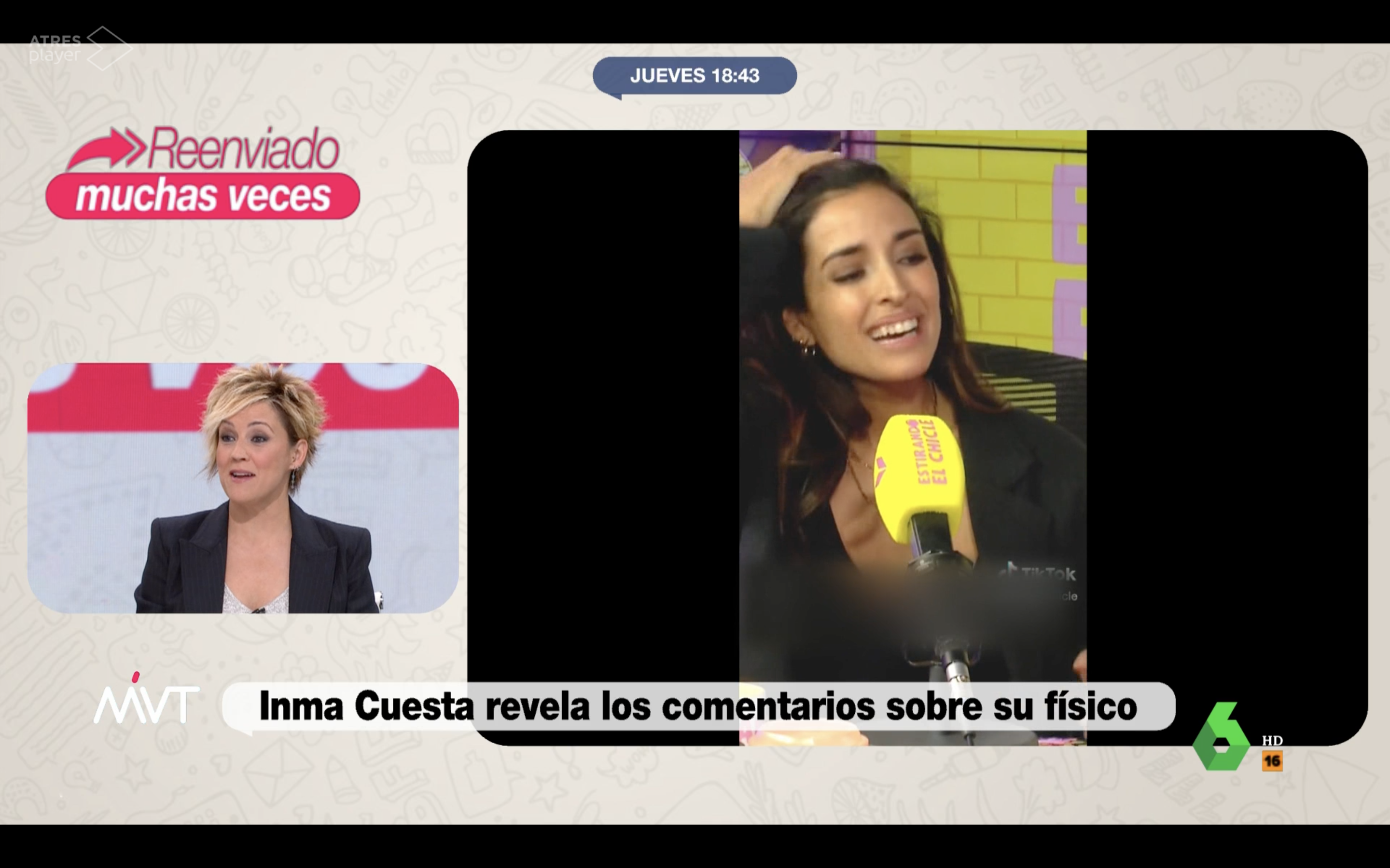 En las últimas horas se ha viralizado en redes sociales un fragmento de un vídeo de la actriz Inma Cuesta en Estirando el chicle hablando sobre los comentarios sobre su físico que tiene que aguantar.