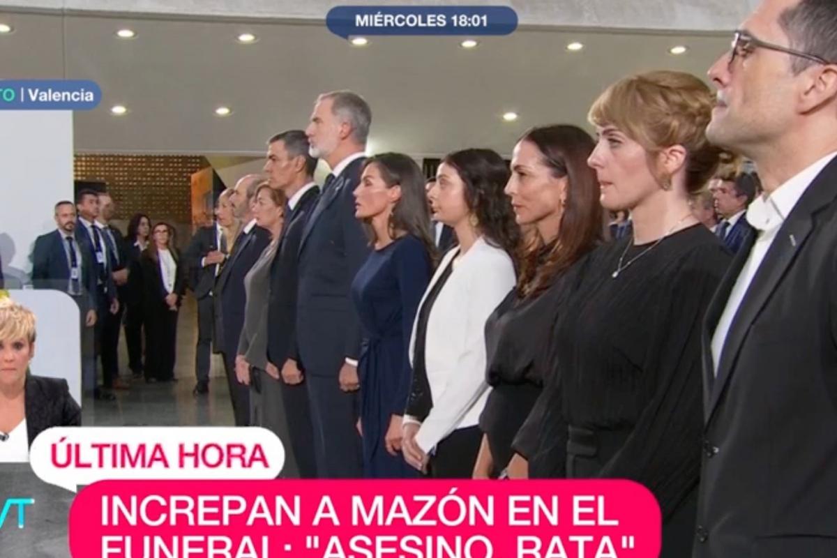 "Cabrón, puto cobarde eres, rata cobarde, nos has matado la vida a todos, ríete, ríete de nosotros viniendo aquí, te ríes de nosotros y de nuestros familiares. No te queremos, cabrón, con la periodista sinvergüenza, cuando estaba la gente ahogándose", le han achacado. Al término del funeral también se han escuchado gritos de "Mazón dimisión", además de otra larga lista de insultos.