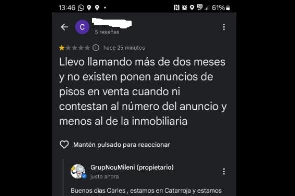 Critica a una inmobiliaria de Catarroja por no coger el teléfono y la réplica de la empresa es brutal
