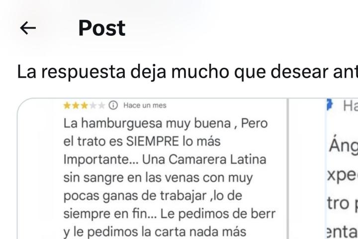 La cuenta Soy Camarero ha compartido en X (antes Twitter) una historia de reseñas de restaurantes que ha dado mucho que hablar por la reacción que ha tenido el dueño del negocio cuando critican a la camarera por su forma de trabajar y la llegan a llamar "latina sin sangre en las venas".
