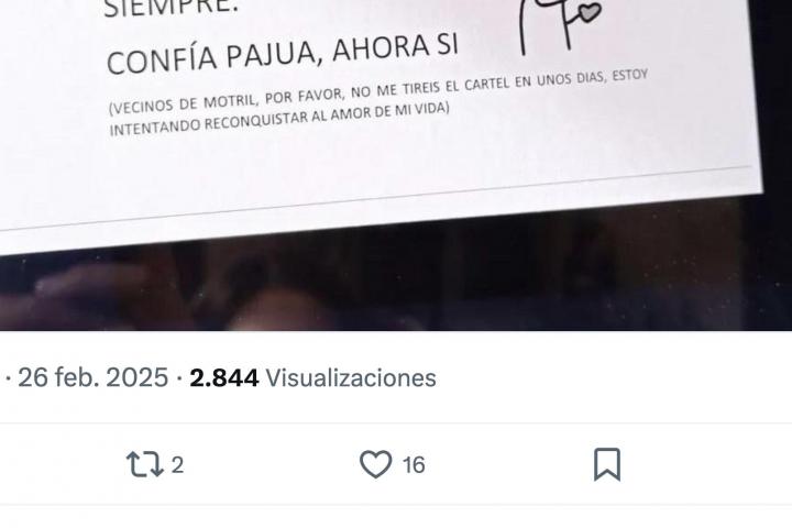 Los vecinos de Motril, en Granada, han visto en sus calles un curioso cartel que no ha tardado en saltar a las redes sociales gracias a Líos de Vecinos, cuenta dedicada a compartir notas, mensajes en vecindarios y carteles de todo tipo.