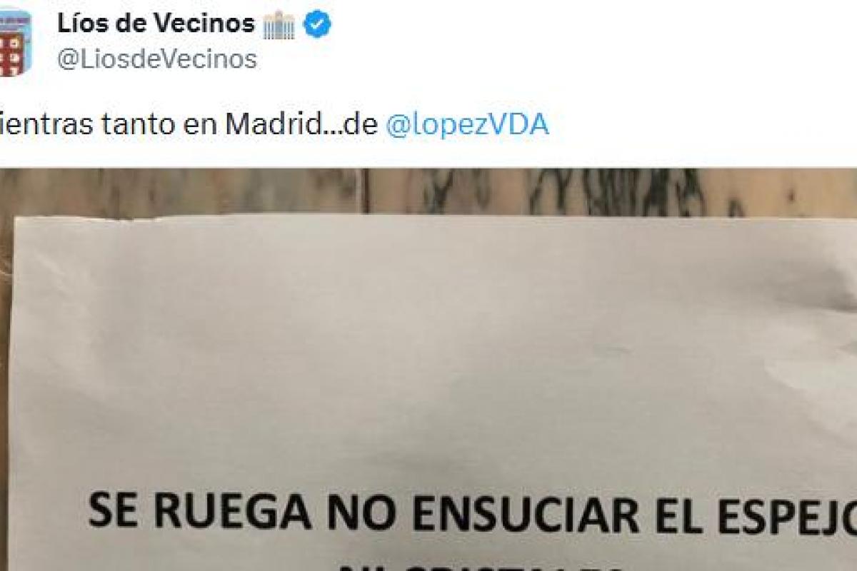 Alguien de una comunidad de vecinos de Madrid estaba ensuciando los cristales adrede, por lo que desde la junta de ese bloque decidieron poner un cartel para que no volviera a suceder.
